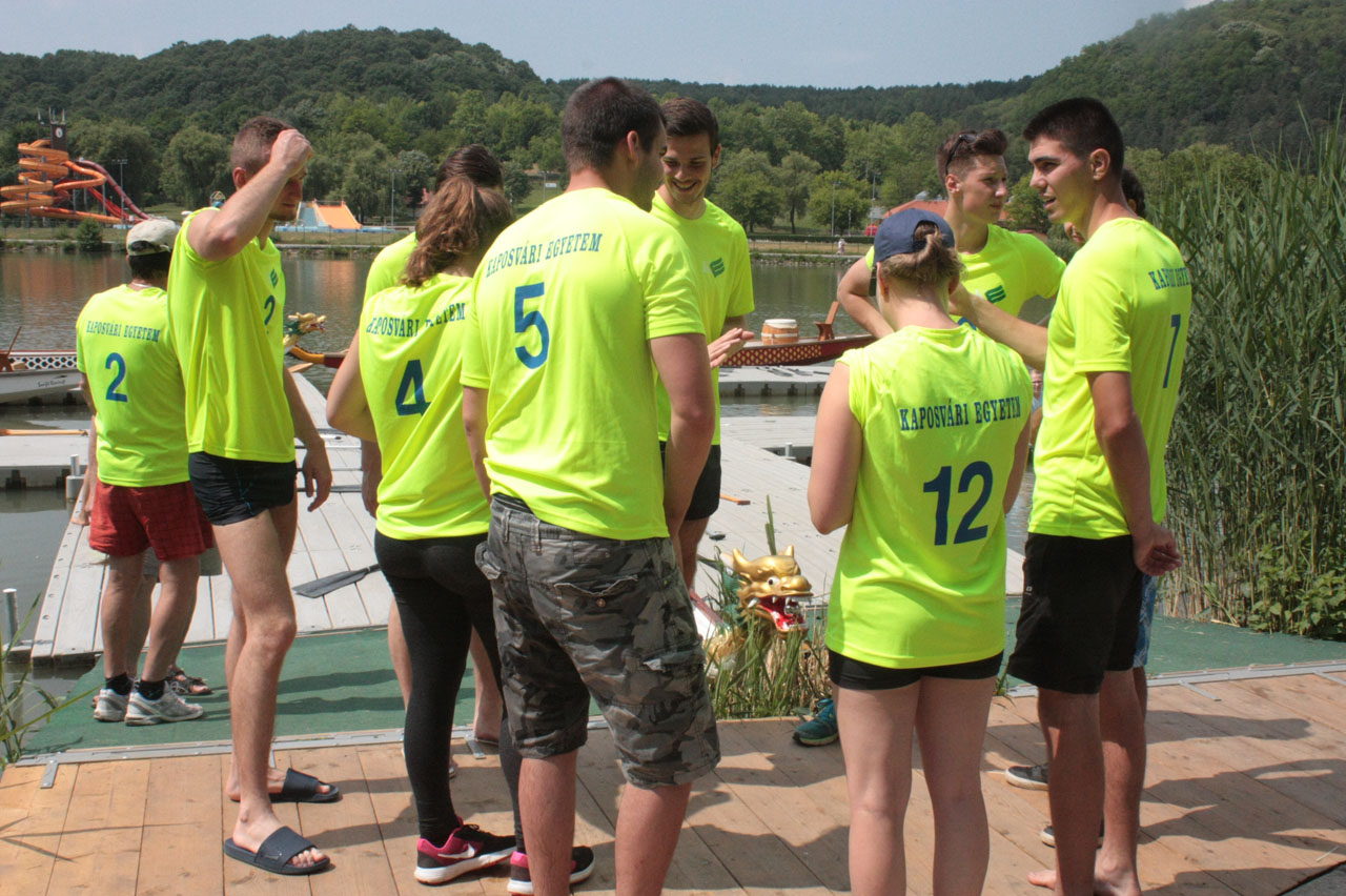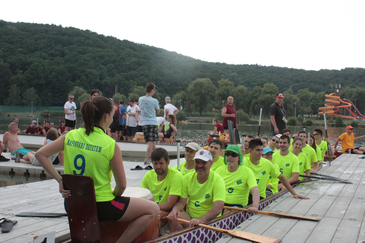 Tavaly májusban ültek először sárkányhajóba egyetemünk oktatói és hallgatói, egy év elteltével pedig már az országos döntőbe eveztek. A fantasztikus bravúrt az orfűi Sárkányhajó Roadshow versenyen érte el csapatunk. 20 fős válogatottunk az előkelő harmadik helyezést érte el, így kvalifikálta magát a szeptember 8-9-i fadd-dombori döntőre.